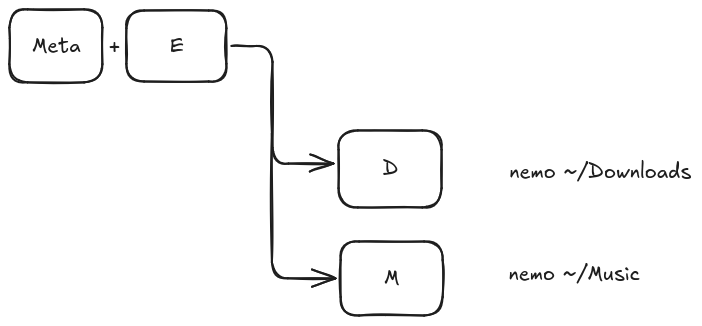 meta plus e followed by d is defined to open the file manager at the Downloads directory.
